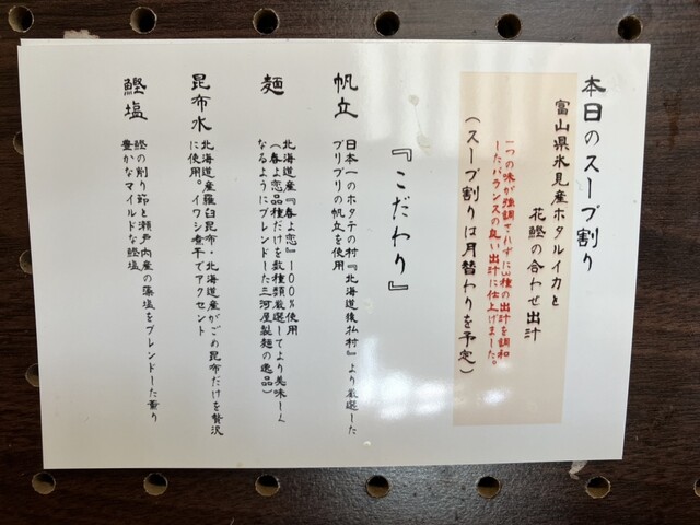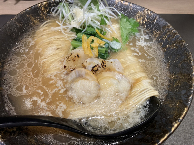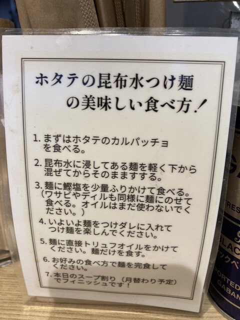 ラーメンの印象はつけ麺に比べるとアレなので初心に戻ってほたての昆布だしつけ麺白と黒。
