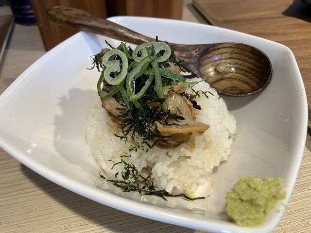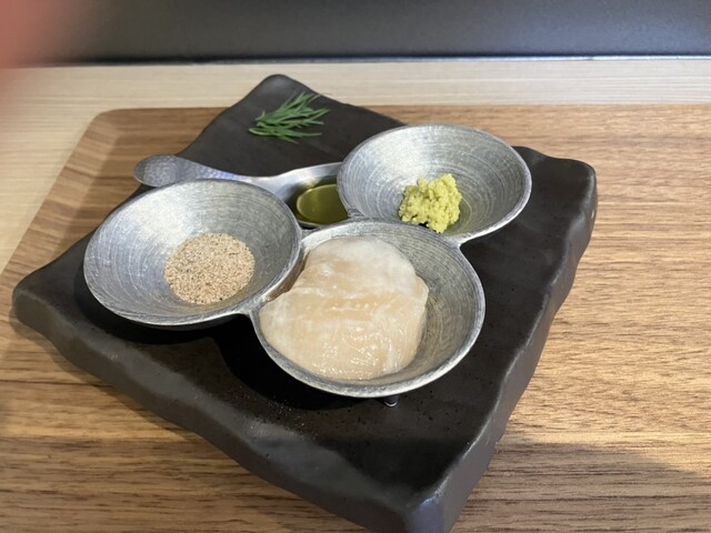 帆立と昆布のご飯初めていたました。半分はスープ割の出汁でお茶漬けで、とのこと。美味しかった。