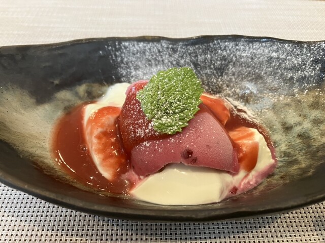 愛知県産じゃがいも。ビシソワーズ、ビーツのソース。