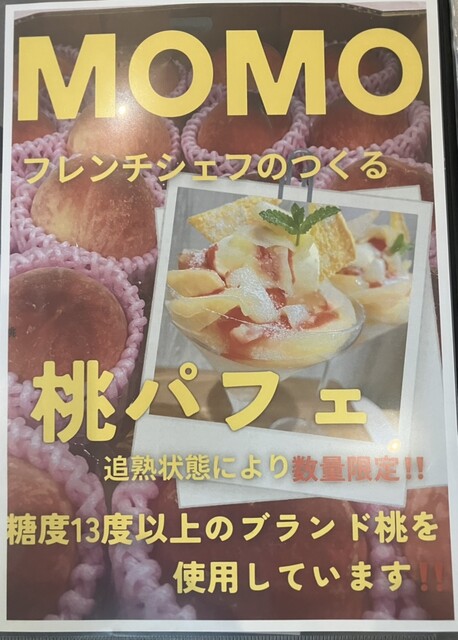 デザートもプラスするとグレードアップでします。この時は桃のパフェでしたが、頼まず。