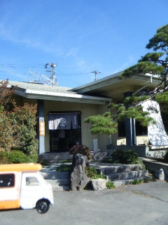 このパーキングエリアには高速バス乗り場と下道を結ぶ歩行者専用道路があるので、階段を降りてパーキングエリア南側の坂道を北西に200mほど下り、日比野病院先の沼田高校入口交差点から通りを南西に600mほど進むと東側のコンクリート敷きの駐車場の奥に見えてくるのが「たこつぼ」です。