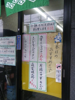 ランチタイムスタートすぐの土曜日の11時20分頃、すでに暖簾がかかっていたので一番乗りかと思って入店すると、すでに2組の常連さんらしいお客さんがメニューを眺めていました。