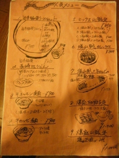 メニューは手書きでA4用紙にびっしりと数枚用意されており、中にはイラストが記載されているものもあって微笑ましいです。