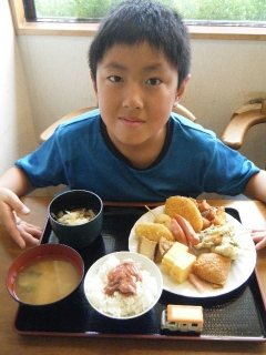 ズキマル君は食後に温かい抹茶オレまで頂いて上機嫌ですが、父はみそ汁の最後の一口を飲むのに必死でした(笑)