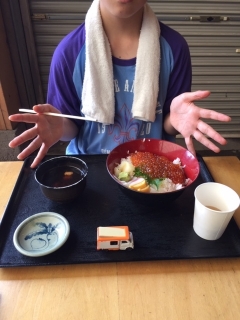 食べ放題も楽しいのですが、普通のドンブリモノも市場価格に比べてかなりリーズナブルなので、ズキマル君が選んだのは「いくら丼(税込820円)」です。