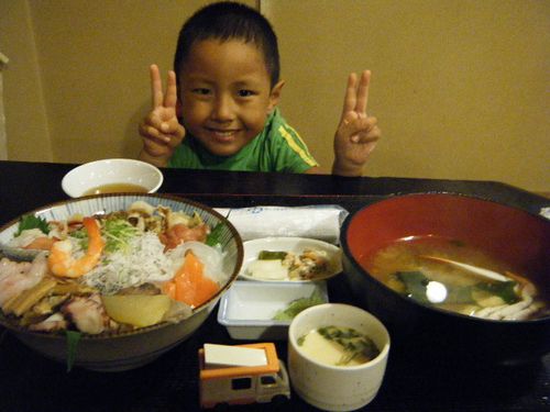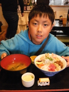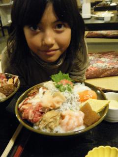 今回は家族全員一致で海鮮丼が食べたいとのことでしたが、予算的に余裕がないのでいつもの激安メニュー「おまかせ丼(980円)」を3つ頼んでみました。