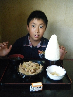 さすがに親子連れでこれだけのボリュームを注文するテーブルは少なく、ちょっとした好奇の目で見られたりしますが、お構いなしでご飯にかぶりつきます。