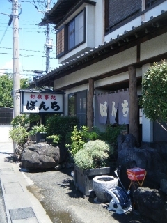 JR中央本線の竜王(りゅうおう)駅から南に出て約350m、竜王駅南交差点から国道52号線を東へ1.1キロほど進み、中央高速道の高架手前から南東に入る側道を350mほど進むと中央自動車道と交差するトンネルが北に見えるので、その十字路を南に入ると突き当りに見えてくるのが「ぼんち食堂(御食事処ぼんち)」です。
