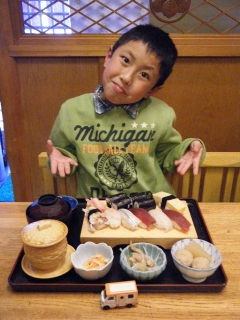 美味しい海鮮に大満足して、会計を済ませると、ズキマル君はお土産にキャンディーを貰いさらに感動していました。