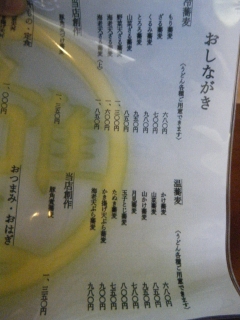 テーブル席と座敷席などで100席を軽く超える店内は、閉店時間が近いこともあり2割ほどのお客さんの入り具合ですが、ズキマル君の希望により座敷席を案内してもらい、座敷入り口近くの窓際の席をお借りしてメニューを眺めます。