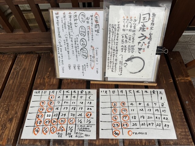 ランチは4種類+肉吸い、鰻重、予約要のコース