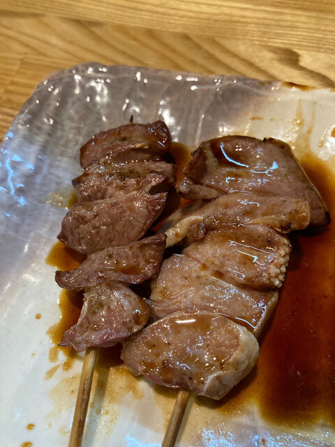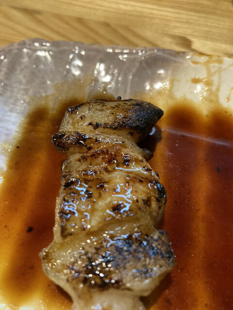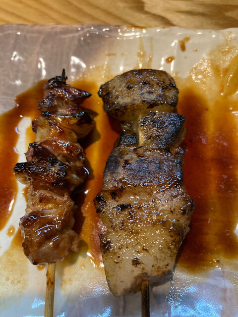 最初は、ればとしろ。この2品か抜群に美味しい。あっ、それとあぶら!私はこの店のタレの味が大好きなので、もつ焼きはぜんぶタレで食べます。