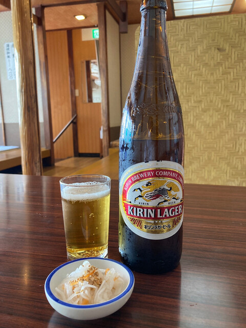 今日は二人で来ましたので,キリンラガー大瓶を注文して,美味しい枝豆をあてに二階の上がりで待ってました。
