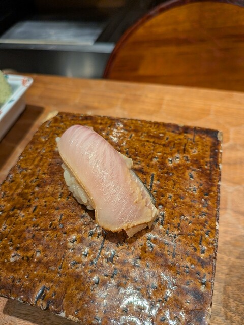 9月〜11月にかけての今季もののいくらを、軍艦ではなく握りでいただくという贅沢。いくら特有の生臭さがなく、皮が薄く、とろけるような口当たりで本当に美味しかったです。