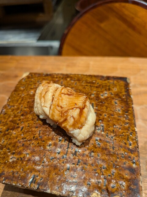 はまぐりの握りも印象的でした。甘だれや醤油を使わず、酒蒸ししただけというシンプルな一貫。あっさりとしながらも、はまぐり本来の旨みと香りが口いっぱいに広がり、「素材を生かす」とはまさにこのことだと感じました。