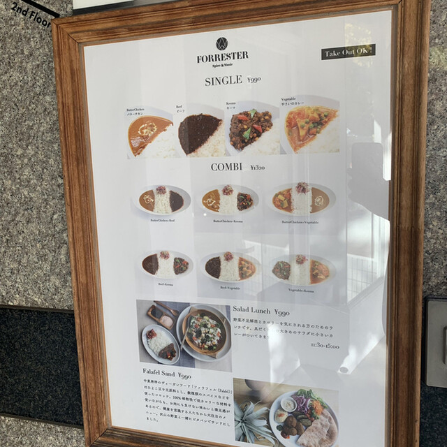 いわゆる中目恵比寿代官山イメージのバーで、エイジングした木目で統一感のある内インテリア。店内BGMはlo-fi、Doopな感じで昔ブルックリンによくあった感じ、夜はバー営業されていて、ジンなどのリキュール類も見たことがないラベルがかなり並んでいる。今回ランチで伺ったので夜はわかりませんが、スパイスの芳香が店内充満しています。