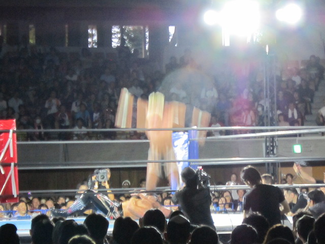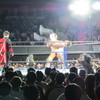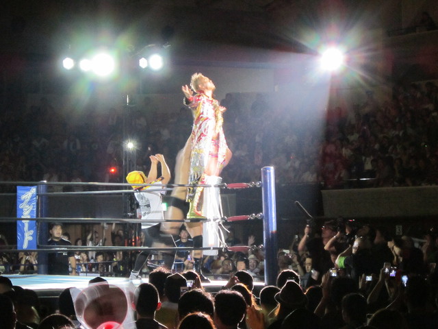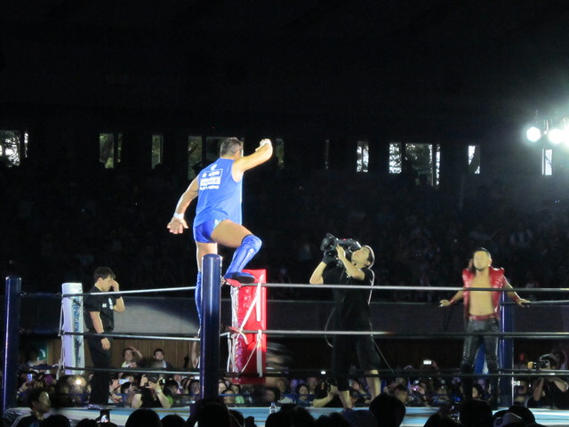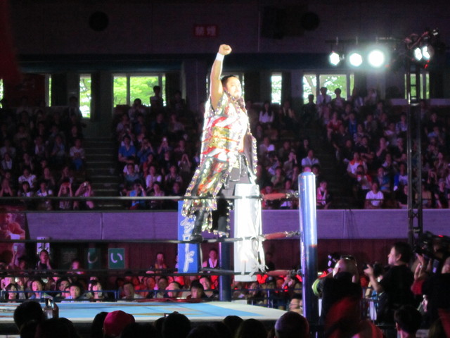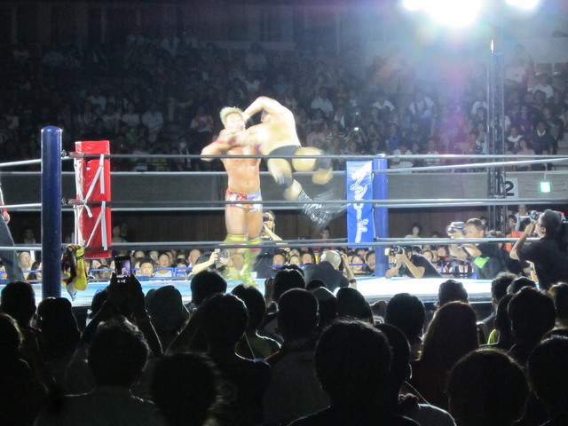 1戦目から小島選手が登場。セミがオカダ選手で、大トリは棚橋選手。