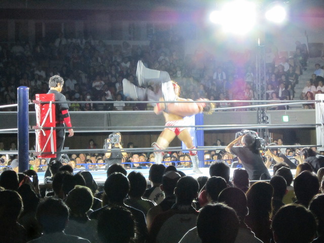 本間選手は強烈な技を多数くらいながらもフォールを何度でも返し、