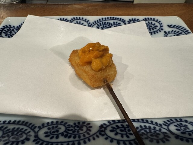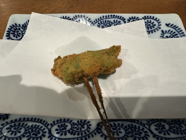 形式は、ストップというまで串揚げが出てくるんですが、どこで止めたらいいのか悩むぐらい、毎度の串揚げで悩む、そんな衝撃が一串ずつありました。