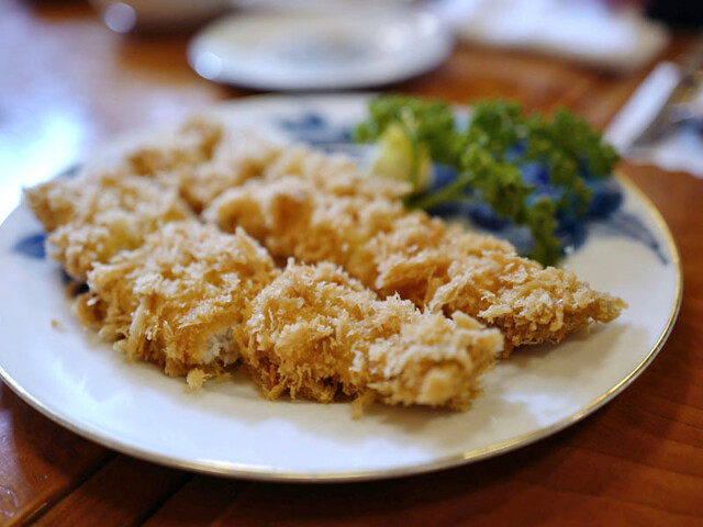 低温の油でじっくり揚げたのでしょう…、色白衣はサクサクで肉はまるで蒸し上げられたような味わい。