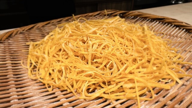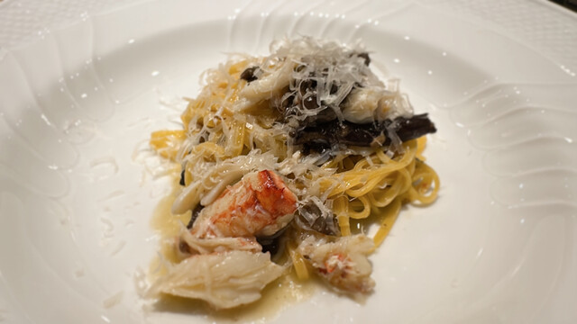 ⚫︎ パスタの太さを敢えて不揃いにしている、蟹とボリボリのパスタ