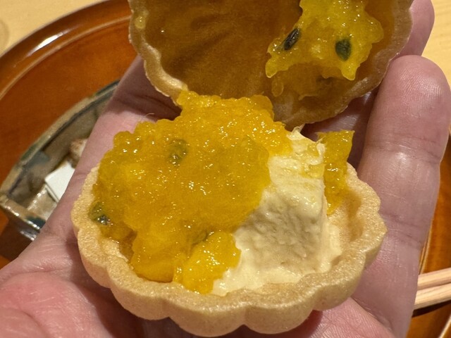 フォアグラ、マンゴー、パッションフルーツのモナカ