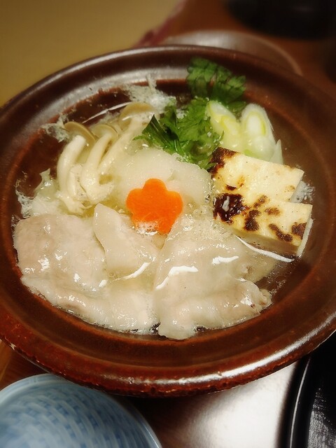 会津地鶏の雪見鍋→ワタシは豚で提供いただく。