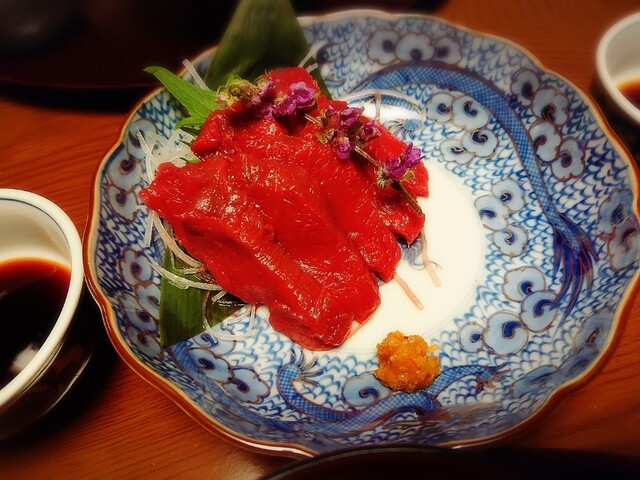 特別注文料理の馬刺は分厚く、柔らかく、旨い!