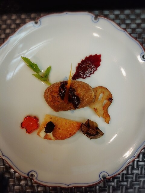 ⑤焼き物?(春菊のもっちりしたお餅のようなお料理に見た目美しく味が。。絶品)