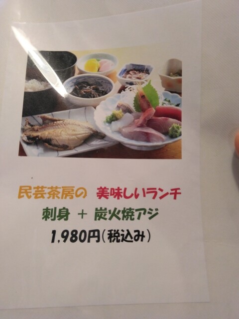 いやあ、危なかったよ。。民芸茶房さんは、対面の豊崎ホテル併設のお食事処であり、一般客も頂けるんだけどさ、3連休だから宿のお客様優先は当然で。