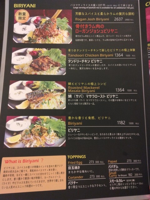 ビリヤニなる食べ物は、それこそ10年前位に同じヤエチカにある、エリックサウスで初めて食してその時に衝撃を受けてさ。