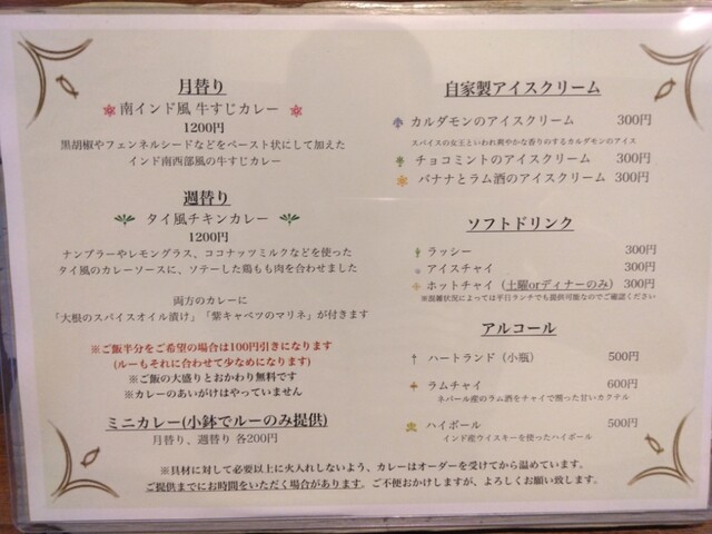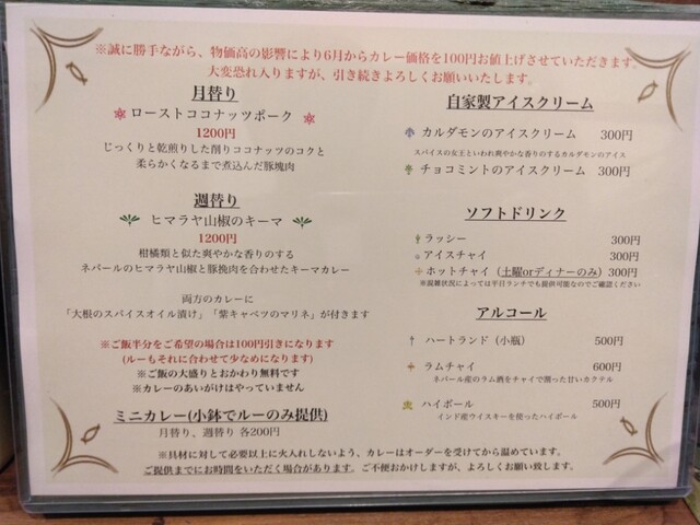 常連さんばかりで、月替わり、週替わりと食べる機会があるからミニカレーではなく、がっつりメインカレーで、それぞれ食べてるのだ!間違いない!