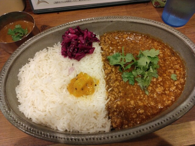 タイ料理で頂くグリーンカレー程油っぽくなく!辛さも刺激的な辛さではなく、でも、ナンプラーを感じるし、パクチーが合う!ソテーされたチキンが合わさって。。さらっとしてるけど、南インドとタイの風を感じたわっ!