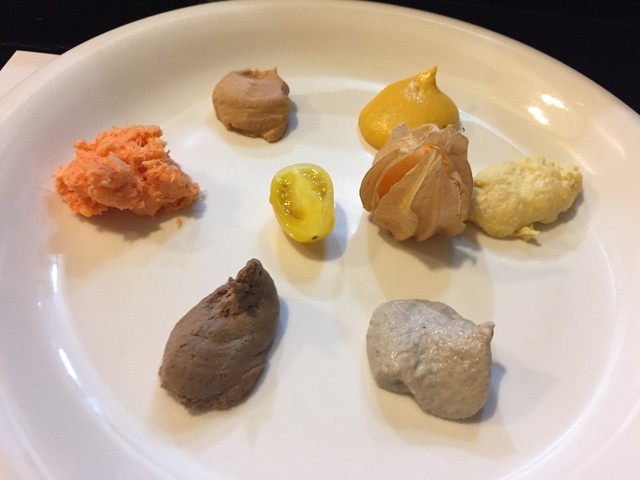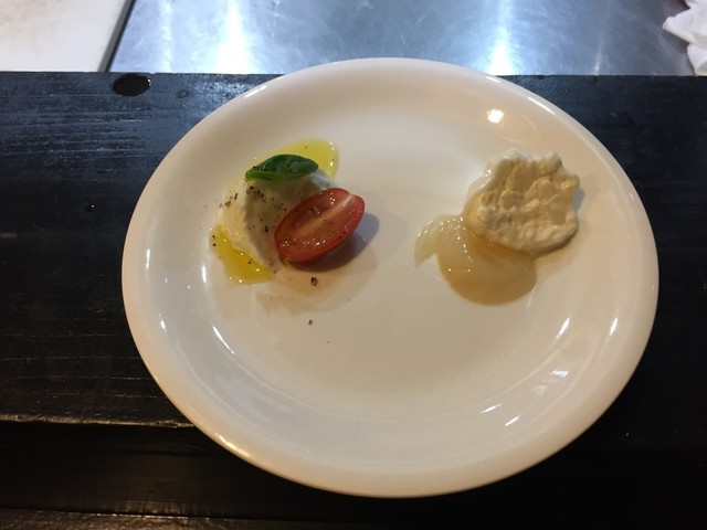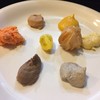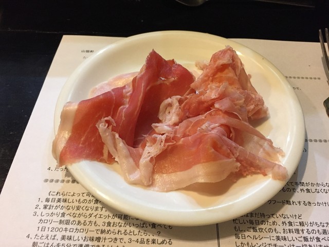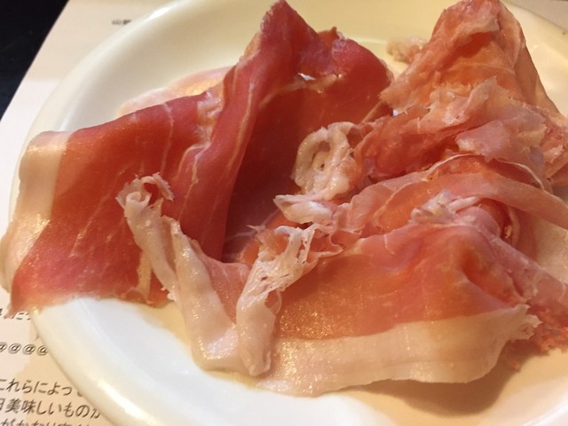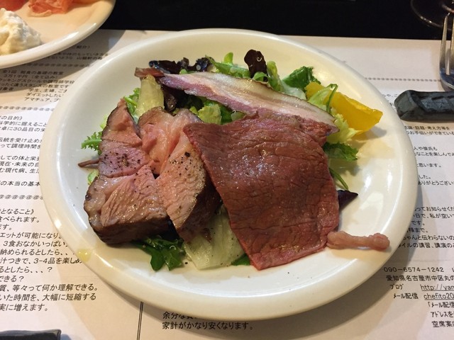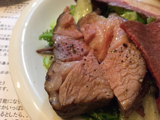 仔羊の炭火焼きと薄焼き見蘭牛と丹波篠山産猪の燻製インサラータベルデ