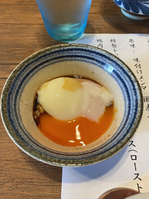 特製の場合鴨肉の火の入れ方や山葵などつける食べ方が味わえるよう別盛りで提供されこれも素晴らしい演出になっています。それだけではなく、温泉玉子も用意されていてラーメンスープを玉子に入れて鴨どんにかけるも良し、麺に絡めて食べるも良し、鴨肉にもつけて食べたらもう天国でした。いろいろなバリエーションで楽しめるこんなラーメン今の今まで食べたことがありません。