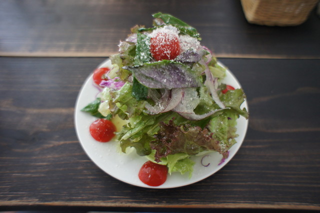 ランチメニューは3種類あり、すべてサラダ、パン、ドリンク付。