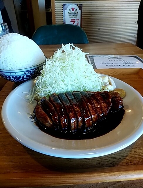 スタウトビールでじっくりと煮込まれた分厚い豚肉がテッペンに