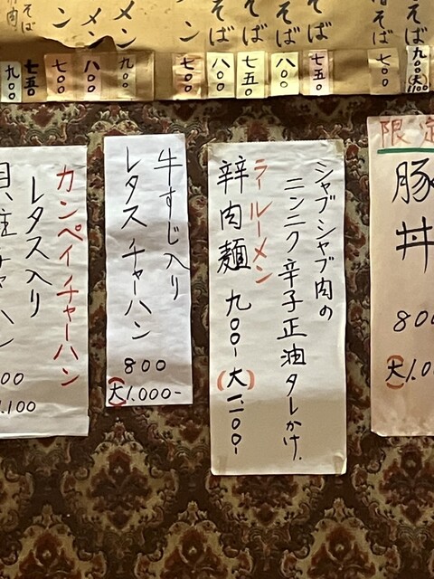 亀戸の町中華とといえば北京飯店ということで、JR亀戸駅から徒歩で15分はかかるこの店に来ました。18:20入店時には先客で女性が1名おりました。他店では見かけないメニュー豊富です。例えばカンペイチャーハンとは何だろうと思うと、表示の隣に牛スジ入りレタスチャーハンと説明書きがあります。どの料理も美味しくので、4人以上で来ないと豊富なメニューを堪能できませんね。お聞きしたところ、シェフは、紀尾井町の南圃園で腕を磨いていたとの事です。合点は行きました。