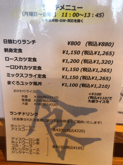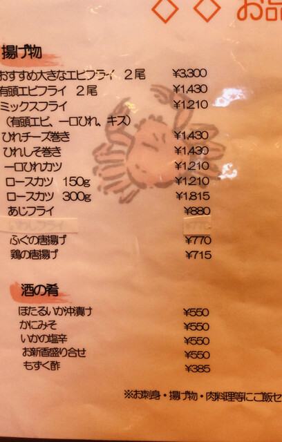 目的であった特大エビフライ(税別2,800円)をオーダーすると、あいにく品切れと…