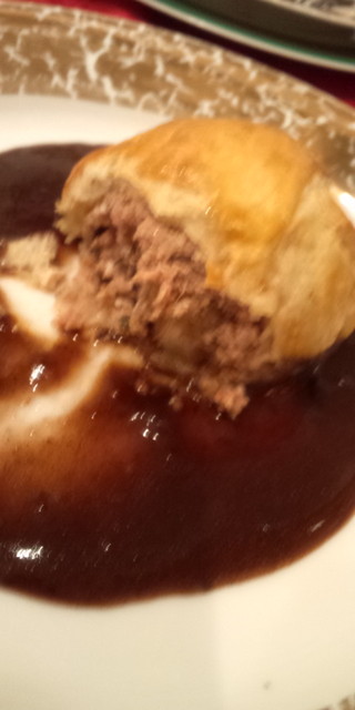 イベリコ豚と子牛のムースのパイ包み焼きの中が見えた状態