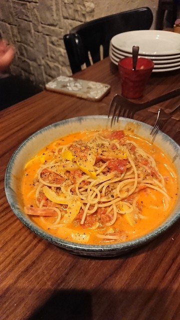 このパスタが……やはりソースが、口に含むと、途端に甘みを増してくれて、まろやかになるという、なんとも至福な味わいというか…ああ、もう、うまい言葉が見つからないっ!