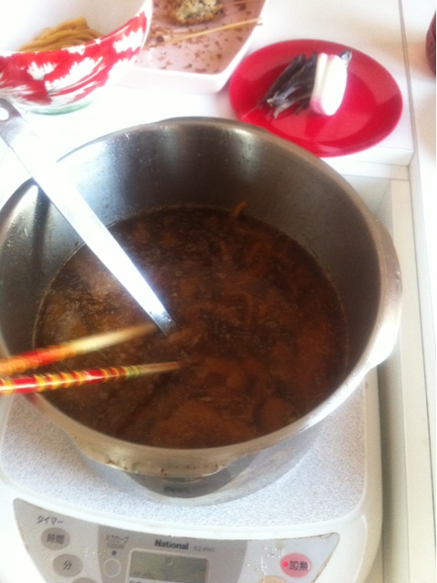 スープはビックリするくらい濃いので水を2リットル近く足しました。
