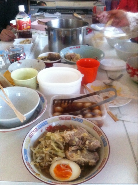 前日に主催者の方が麺、肉とヤサイ、スープを買っておいて頂きました。