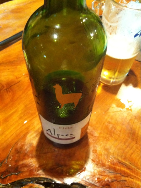 酒はホッピーをソト1ナカ4飲んでワインボトルを。