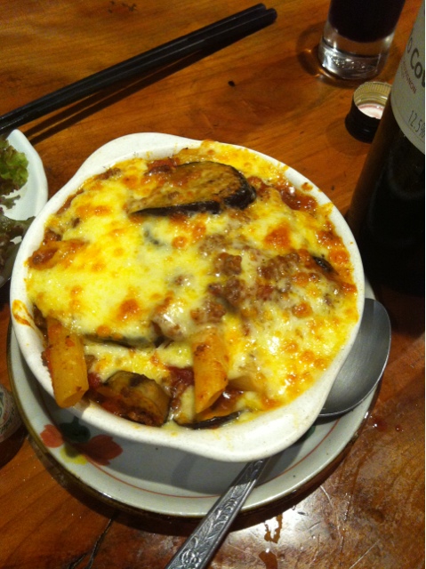 <2013/09>ナスのミートソースチーズ焼き(350円)そりゃあ旨い。