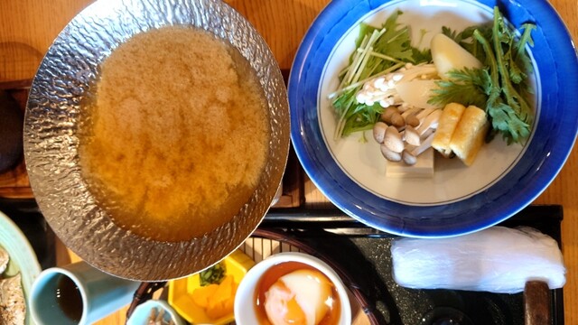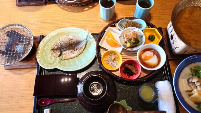 朝食も豪華。鯵の開きはセルフで焼いていただく。味噌汁も具は自分で加えて火にかけていただく。朝から腹一杯になりました。
