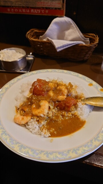 昔と同じエビトマトカレーの7辛を注文。なんともスパイスの香りが懐かしい。辛さは30辛まであるとのことで7辛では中辛くらいかな。程よい辛さでたちまち完食。やはりボルツは私にとって青春の味で懐かしくうまかった。