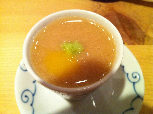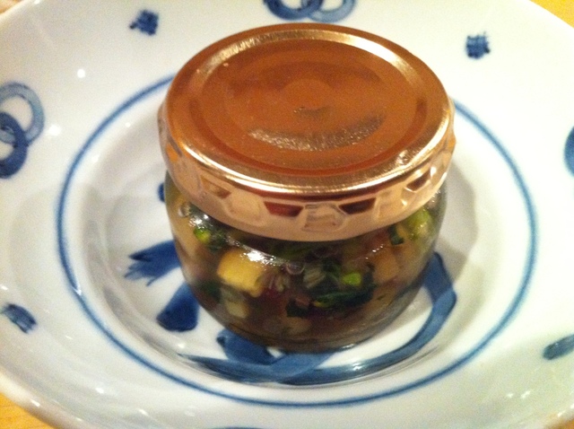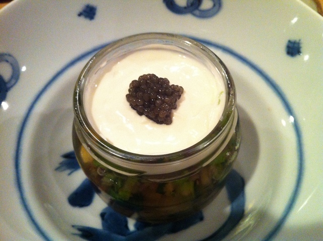 春野菜の土佐酢ジュレにマスカルポーネとキャビアのせ