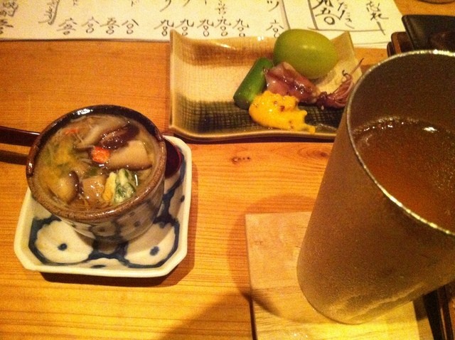 沖縄のとうもろこしをすり流しにした冷製スープのお通しが激しくおいしい。