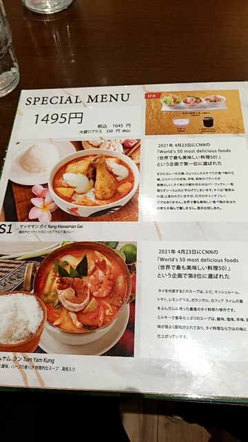 とても印象的な辛旨チャーハン。かなりスパイシーで汗でます。タイ名称はカーオ パット ガパオ クルック ヌア。前菜のミニスープ一口目というか初見でここは本物のタイレストランと直感しました。カイダーオ(目玉焼き)はちゃんと揚げ焼きで白身の香ばしいパリパリ加減も本場の証。インバウンダーもチラホラいました。食後はタピオカデザートとレモングラスティがつきます。